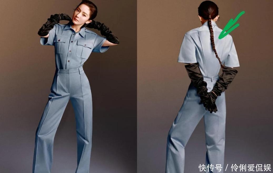 但接下来这套蓝色裤装,就有点一言难尽了。裤装剪裁挺括是真的,杨幂的好身材也确实一览无余,长腿优势拉满,可偏偏搭配了一副黑手套,还梳了一根又细又长的辫子,瞬间拉胯!怎么看都觉得不伦不类,优雅中带着一丝诡异,好好的御姐风,被这两个配饰毁得一干二净。