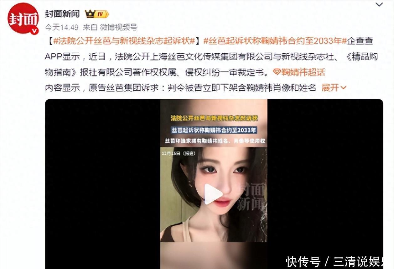 首先,丝芭传媒在起诉新视线杂志社的著作权侵权案中,主张其与艺人鞠婧祎的专属经纪合约有效期至2033年,引发公众对20年合约合法性及双方纠纷核心矛盾的关注。