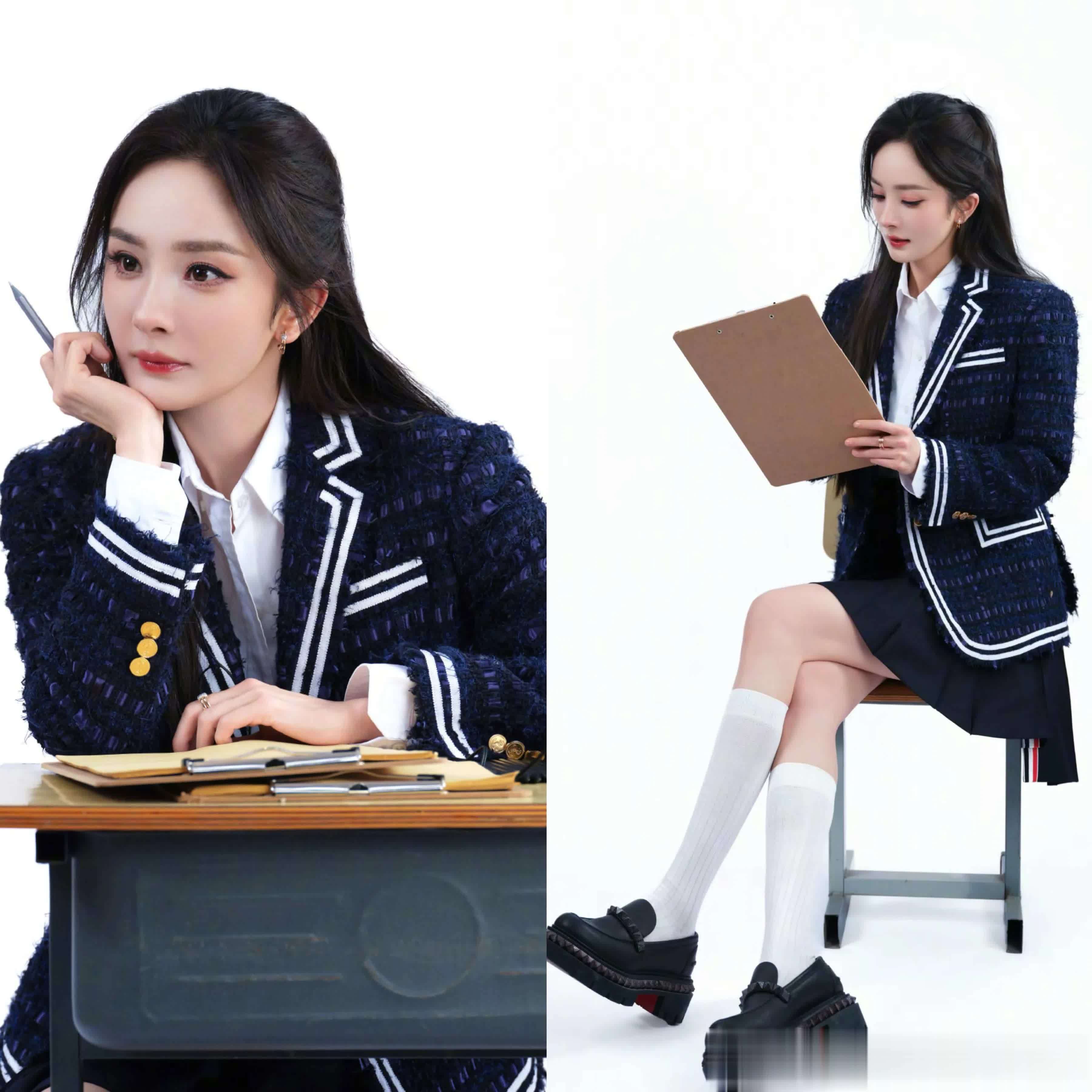活动开始前的精修图中,杨幂的这一身装扮格外青春洋溢。向来以“少女感”闻名的她,将装嫩进行到底。