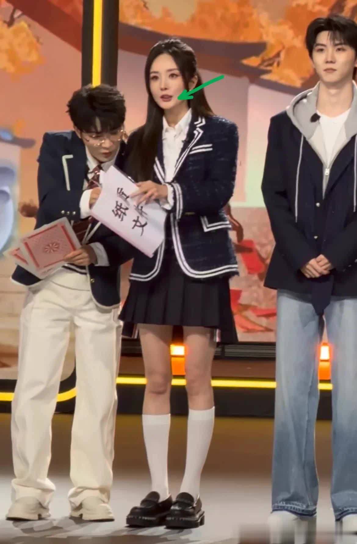 当看到有镜头怼脸拍摄时,杨幂很有经验地挡住了脸,但镜头仍捕捉到了她脸上的纹路,她都不太敢做表情,连笑都有些拘谨。