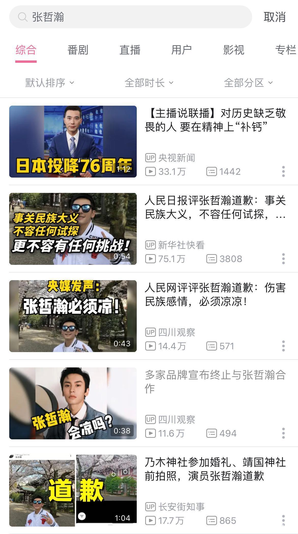 此后张哲瀚的所有主要参与的作品开始全面下架处理。