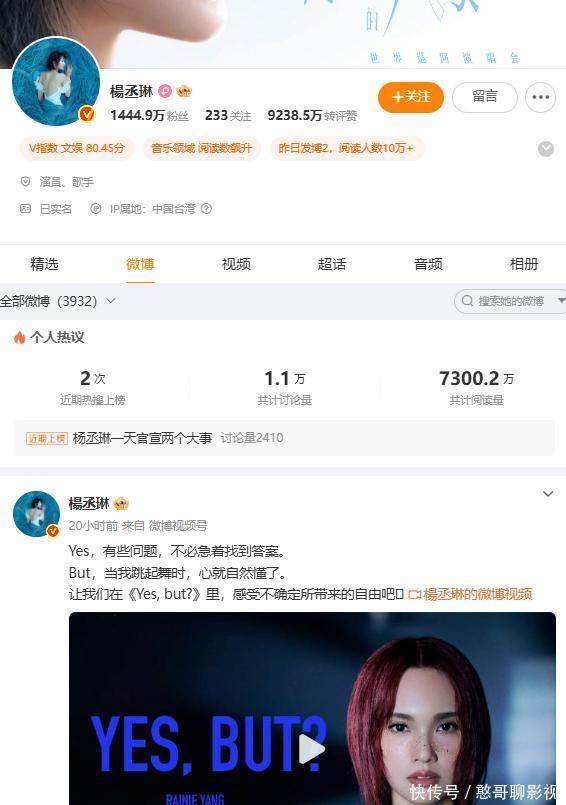 杨丞琳是另一位在立场问题上含糊其辞的台湾艺人。