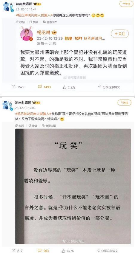 2023年,杨丞琳在郑州演唱会上当场说“河南人爱骗人”。